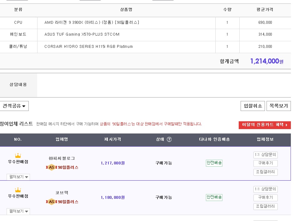 이번에는 3900x 570x보드 커세어 수냉식 쿨러로 업그레이드하려고합니다.