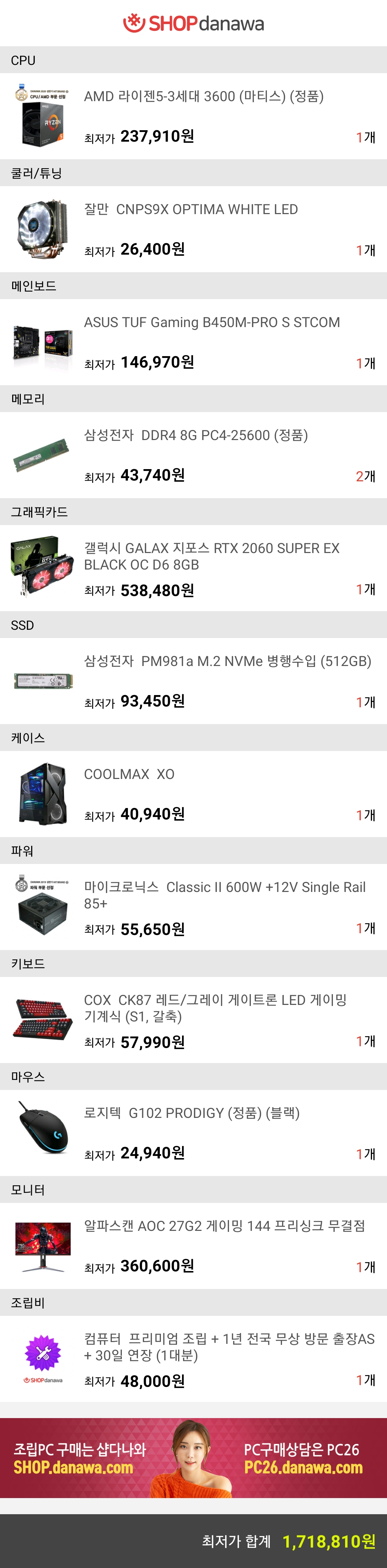 제가 구상한 온라인 게임용 견적입니다.